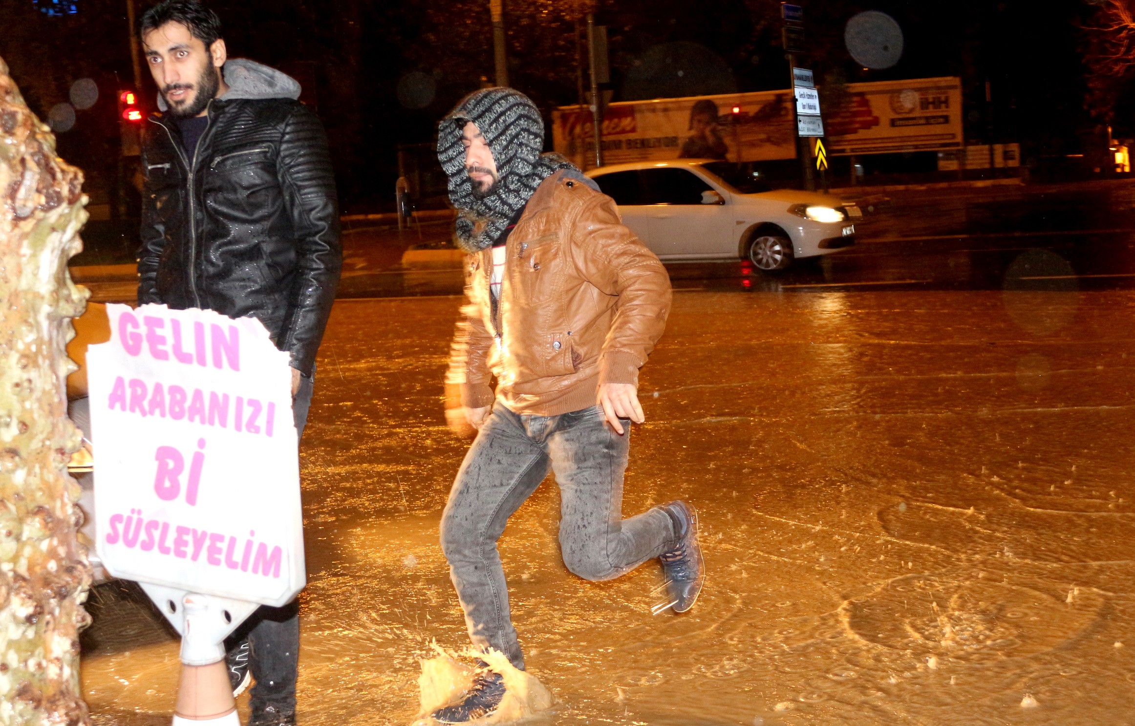 Cadde ve sokakların sel suları nedeniyle göle döndüğü Adıyaman’da hem sürücüler hem de yayalar zor anlar yaşadı. Sürücülerden bazılarının araçları göle dönen caddede ilerleyemezken, vatandaşlarda ilerlemekte güçlük çekti.