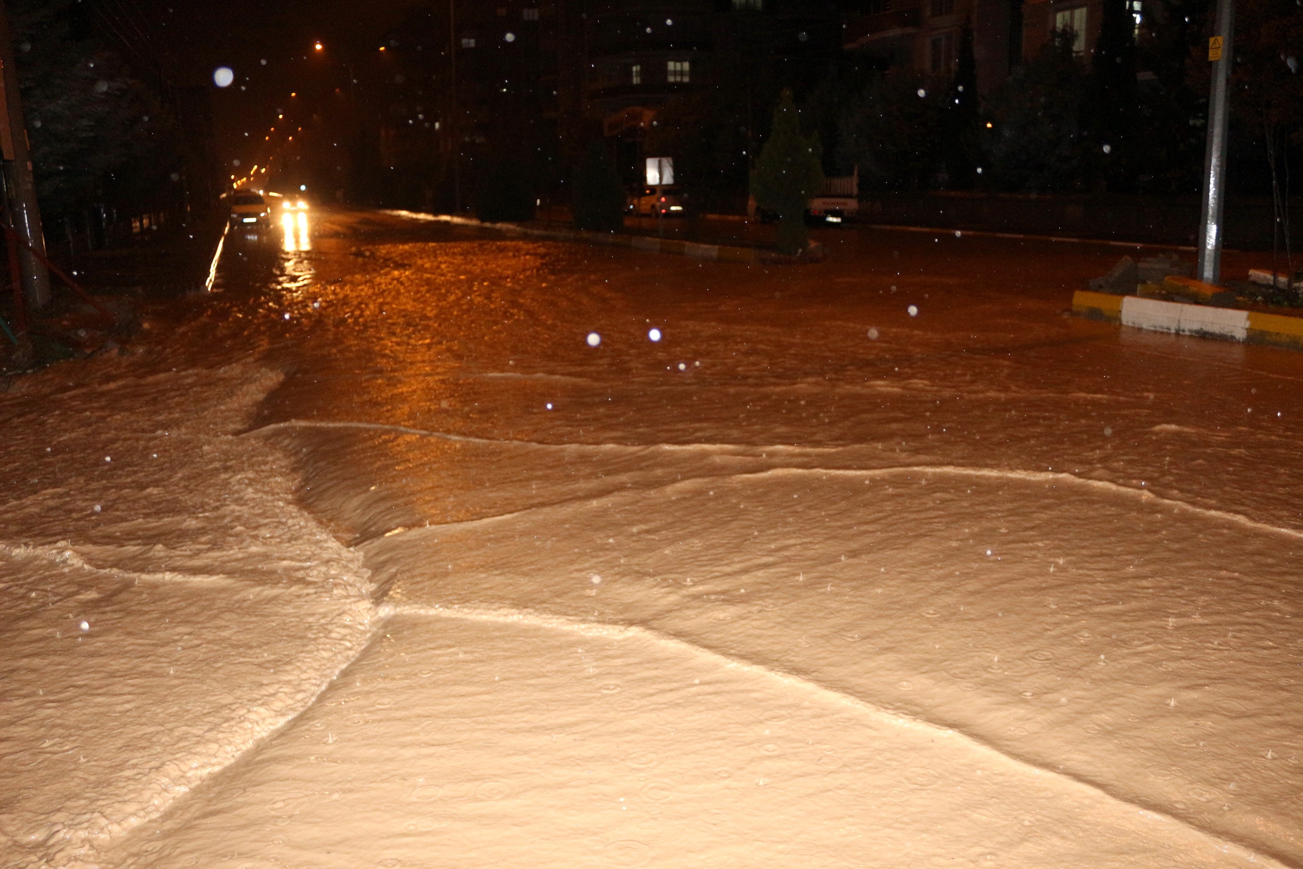 Adıyaman’da akşam saatlerinde etkili olan şiddetli yağış cadde ve sokakları göle çevirdi.