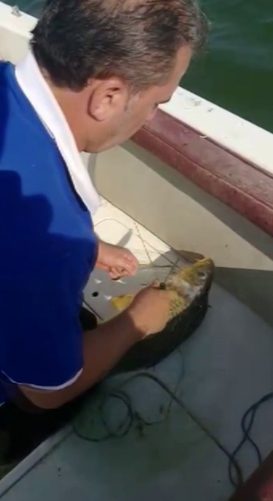Konuyla alakalı olarak Atatürk Barajı Göleti'nde tekne ile denetim yapan Tarım ve Orman il Müdürlüğüne bağlı Su Ürünleri ekipleri, baraj içerisinde gördükleri metrelerce uzunluğundaki ağı tekneye çekti. Ağda iki büyük balığın olduğunu fark eden görevliler, teknede bulunan bıçak ile ağları parçaladı.