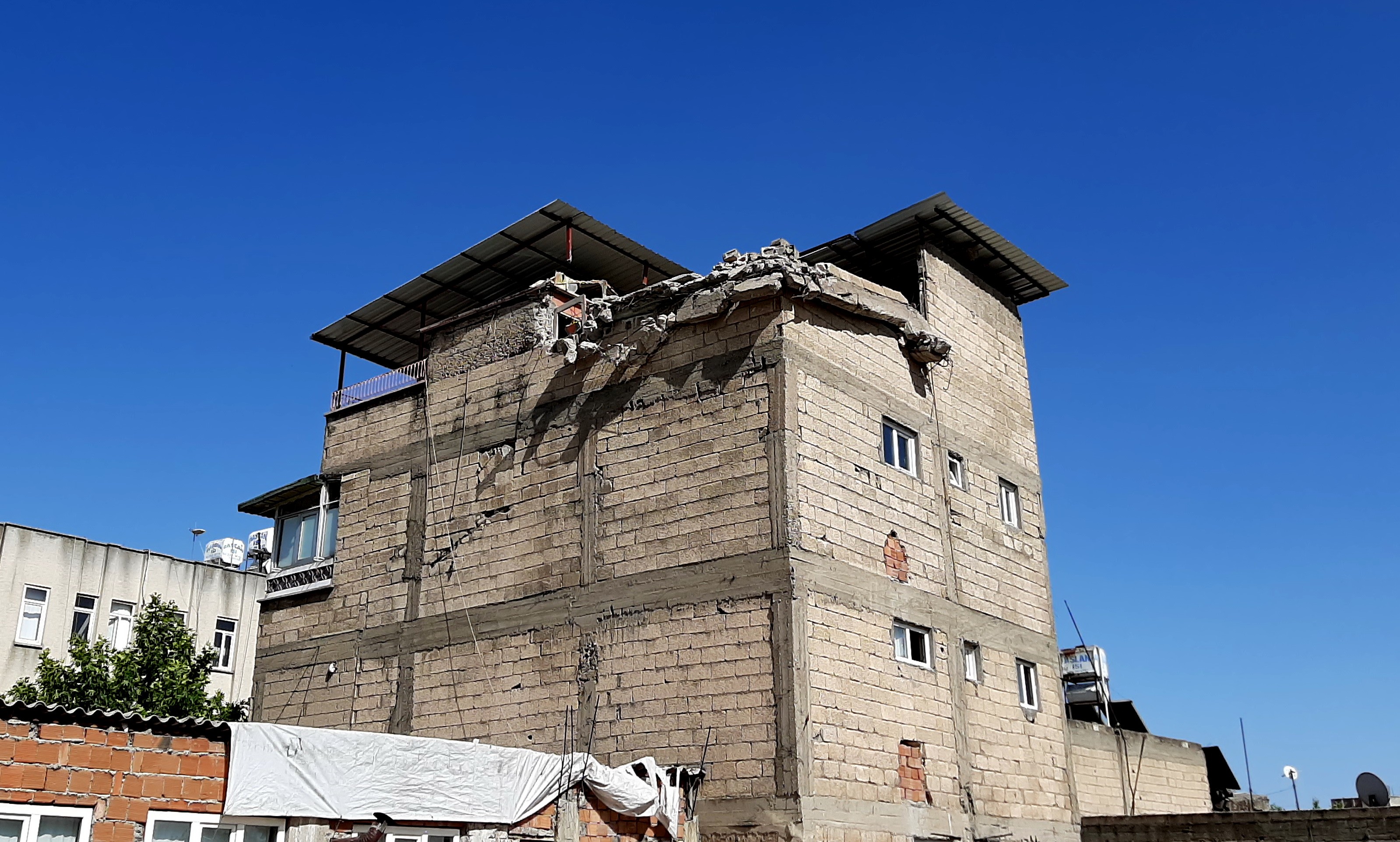Olay, Adıyaman merkez Sıratut Mahallesi Cumhuriyet Caddesi üzerindeki 4 katlı binada meydana geldi. Bilinmeyen bir nedenden dolayı binanın teras katı biranda çöktü. Çökme esnasında duvardan kopan taş ve briketler yanında bulunan 2 katlı binanın çatısına ve yan taraftaki otoparka düştü. Taş ve briketler çatıyı delerek Abdullah Boyraz’ın oturduğu evin mutfağını kullanılmaz hale getirdi.