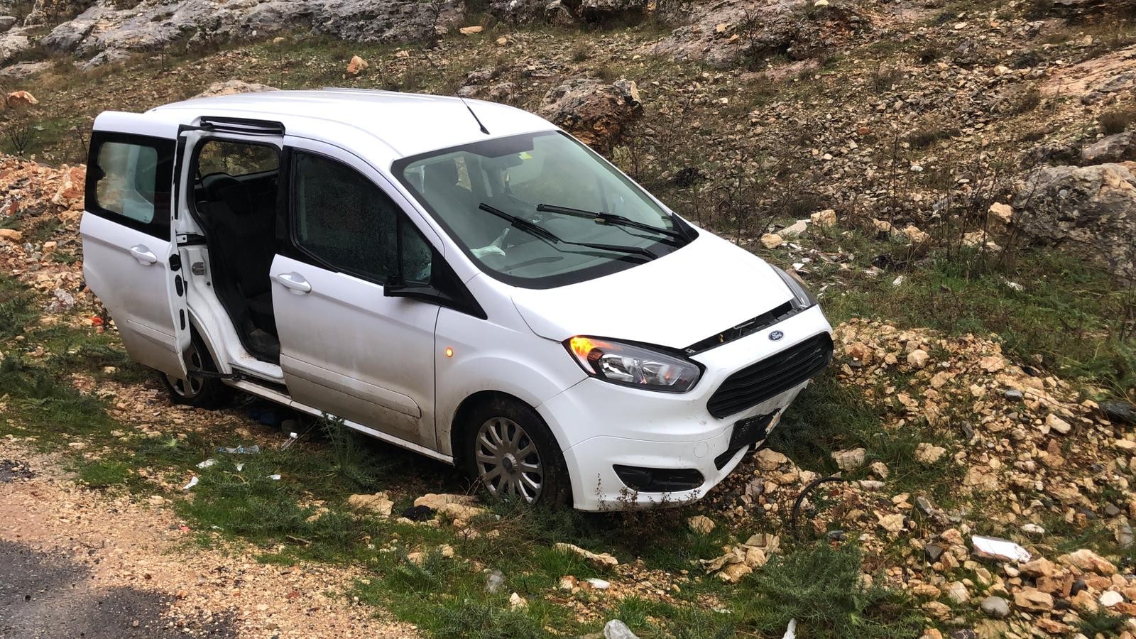 Adıyaman’da, hafif ticari aracın yoldan çıkarak şarampoldeki taşlara çarpması sonucu 3 kişi yaralandı.