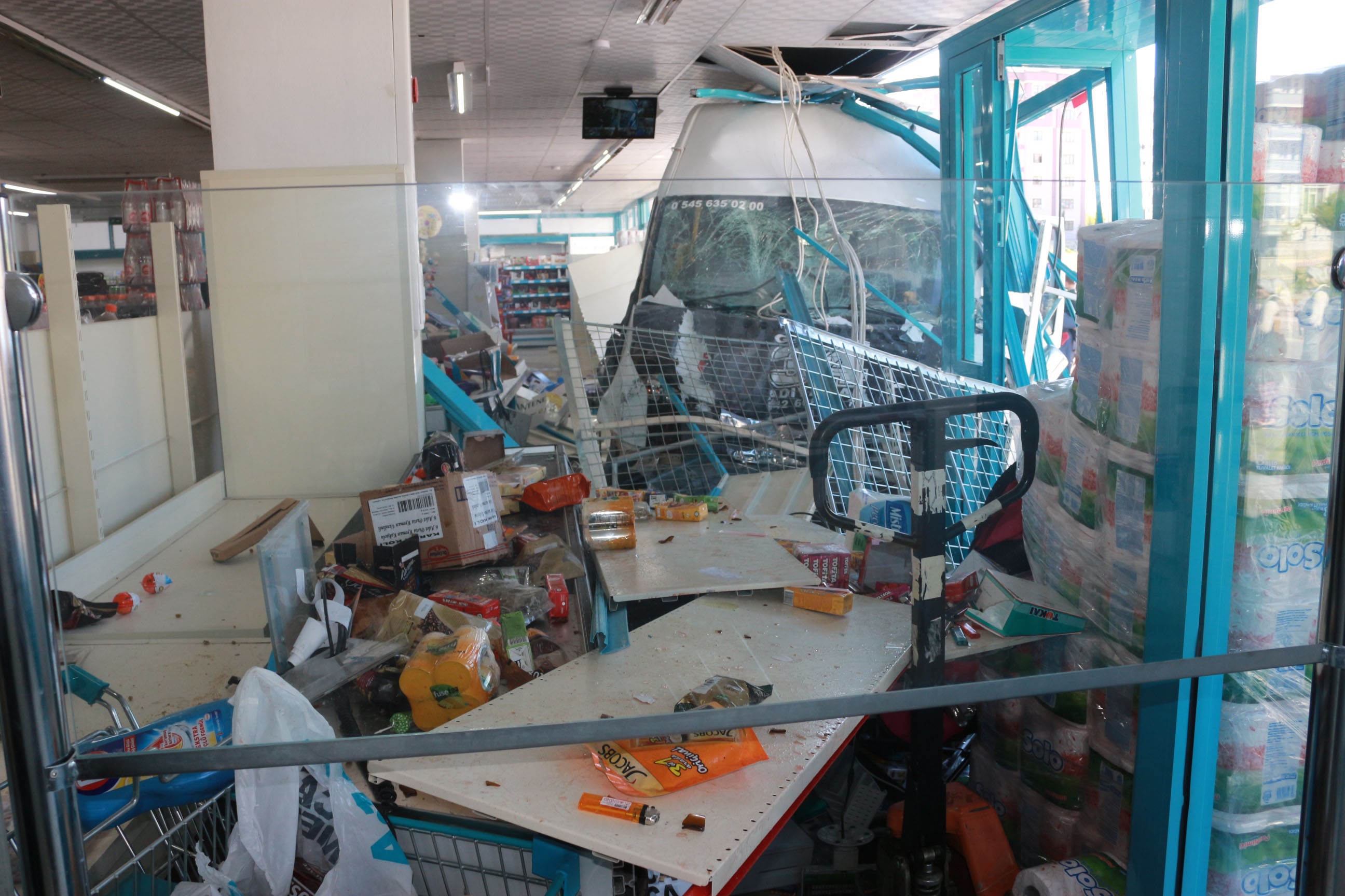 Kaza sonrası polis ekiplerinin yaptığı incelemelerin ardından kaza yapan araçlar yoldan ve marketten kaldırıldı.