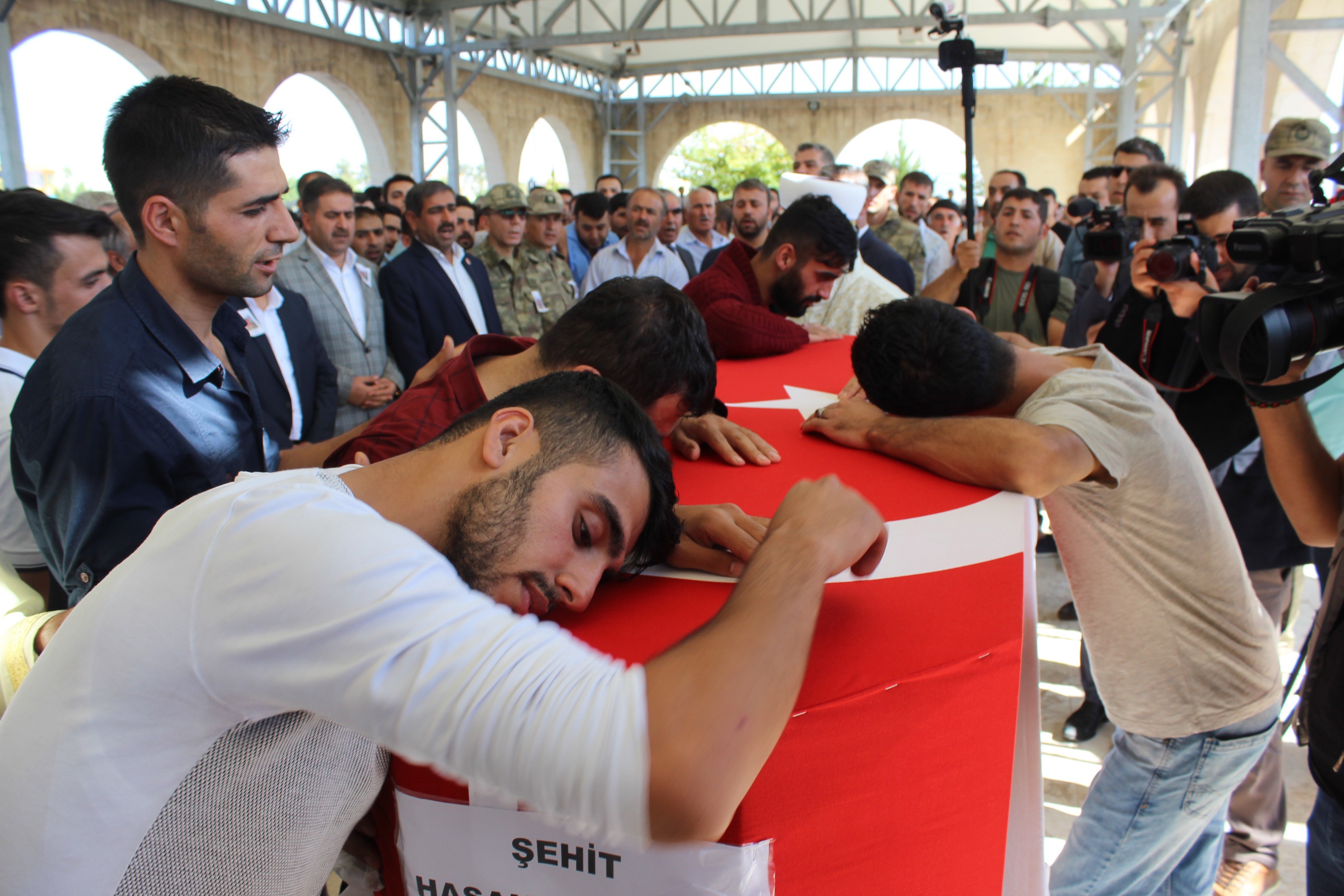 Son kez baba ocağına götürüldükten sonra Adıyaman Yeni Mezarlık Camii’ne şehidin cenazesi getirildi. Beş kardeşten birisi olan Sözleşmeli Piyade Er Hasan Aydoğdu’nun Türk bayrağına sarılı tabutuna sarılan şehidin kardeşleri göz yaşlarına boğuldu.