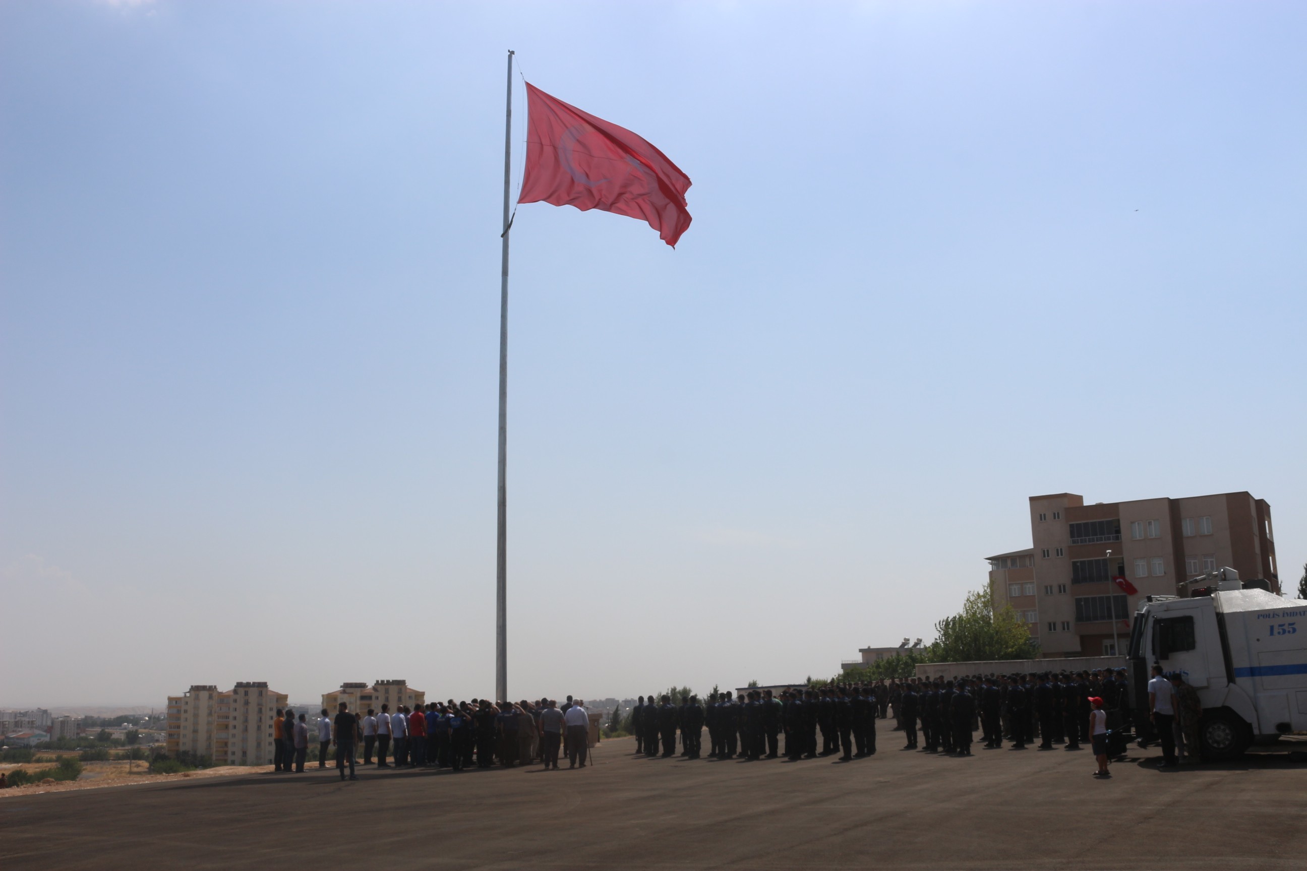 Pirin mevkinde yapımı devam eden Adıyaman İl Emniyet Müdürlüğü Özel Harekat Şube Müdürlüğü ile Çevik Kuvvet Şube Müdürlüğü hizmet binaları önünde göndere Türk Bayrağı çekme programı düzenlendi.