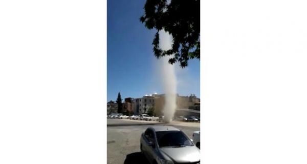 Adıyaman'da oluşan toz hortumu metrelerce yükseğe çıktı.