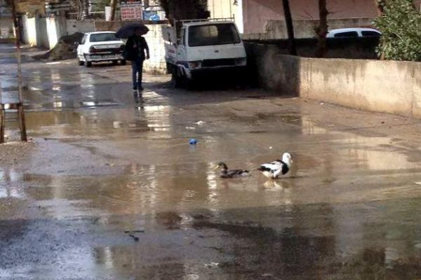 Şehrin bir çok bölgesinde köstebek yuvasına dönen yolları yağmur yağışıyla birlikte vatandaşları adeta çileden çıkarırken bir yandan ise ördeklerin sevincine neden oldu.