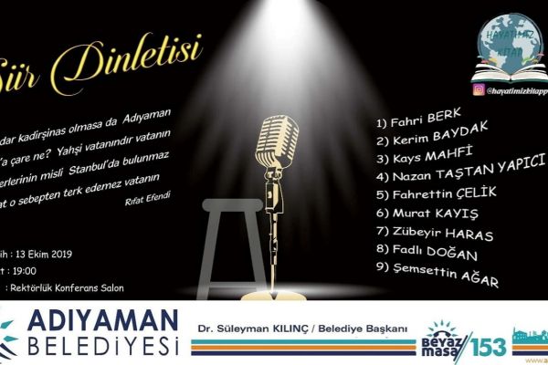 Belediye Başkanı Süleyman Kılınç da, tüm Adıyamanlıları şiir dinletisi programına davet etti.