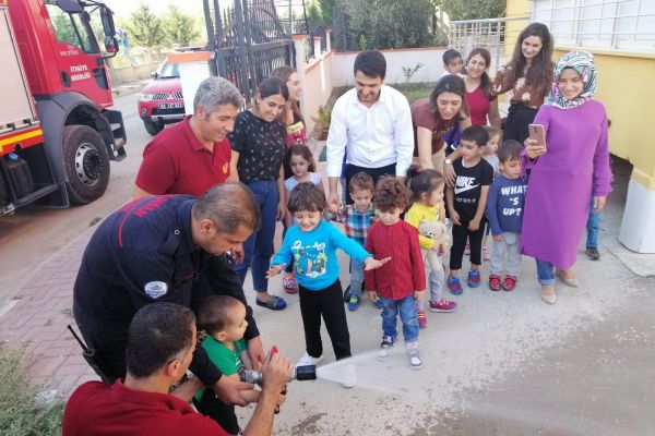Anaokulu öğrencilerini itfaiye ekipleri bilgilendirdi