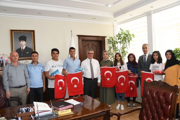 Koruma altındaki Çocuklarda milli iradenin pekiştirilmesi ve demokrasinin öneminin kavratılması amacıyla Aile, Çalışma ve Sosyal Hizmetler İl Müdürlüğü tarafından 15 Temmuz Demokrasi ve Milli Birlik Günü anma etkinlikleri kapsamında kurum içinde açılan resim, şiir ve kompozisyon yarışmasında eserleri dereceye giren öğrenciler, Aile, Çalışma ve Sosyal Hizmetler İl Müdürü Fehmi Çelik’le birlikte Vali Aykut Pekmez’i makamında ziyaret etti.