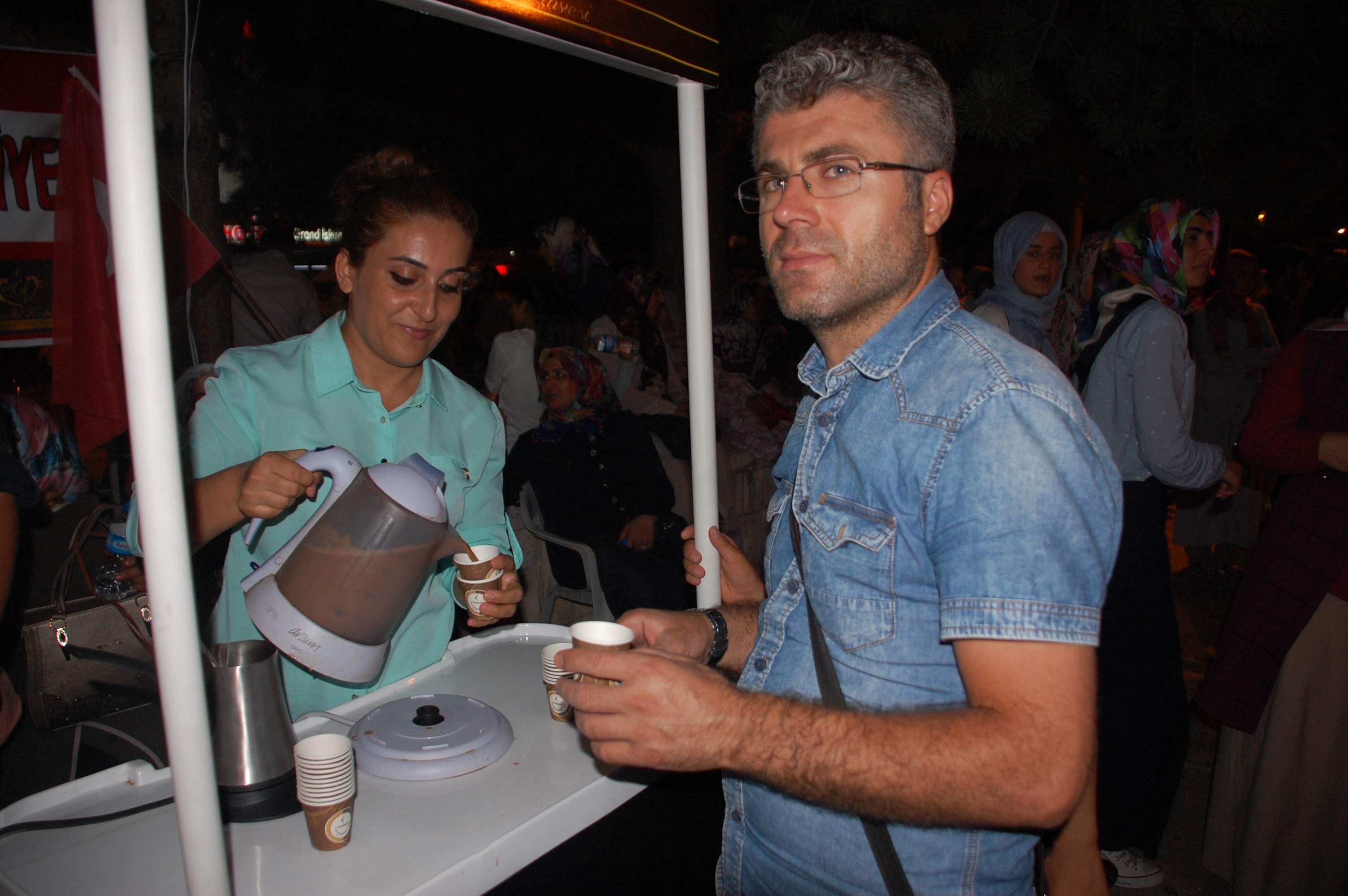 Adıyaman’da, 15 Temmuz’dan bu yana devam eden darbe girişimine karşı meydanlarda olan halka Adıyaman’da bulunan Kef Osmanlı Kahvesi ikram ediliyor.
