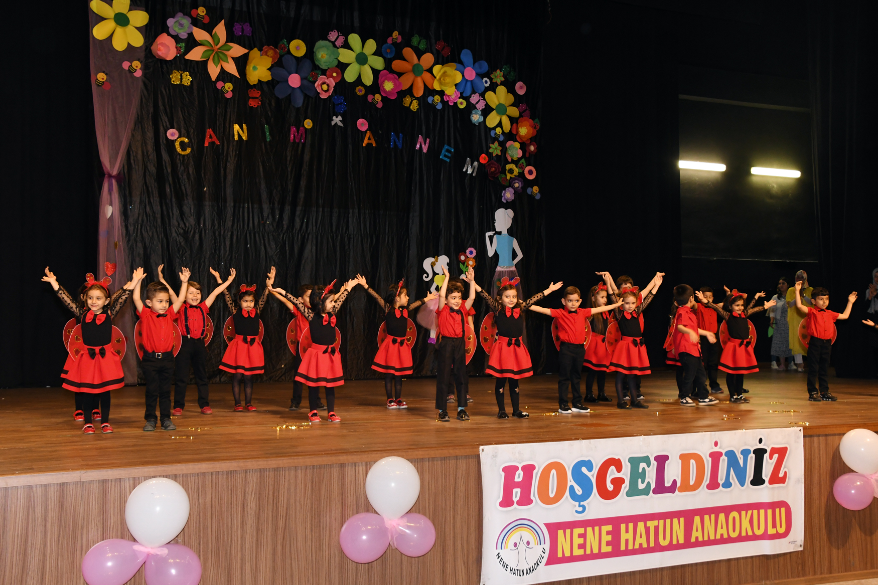 Saygı Duruşu ve İstiklal Marşı’nın okunmasıyla başlayan programda, Nene Hatun Anaokulu öğrencileri bir birinden güzel gösteriler sergileyerek, salonda bulunan katılımcılardan büyük beğeni kazandı. Minik öğrenciler, yaptıkları gösterilerle annelerine duygulu anlar yaşatarak bol bol alkış aldı.