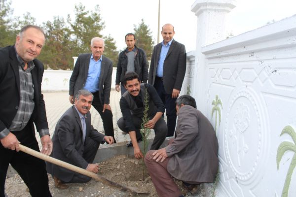 Adıyaman'ın Samsat ilçesinde prefabrik hükumet konağı çevresi ağaçlandırıldı.