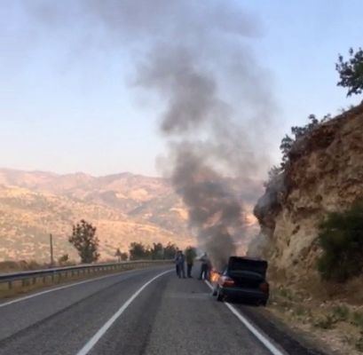 Adıyaman Çelikhan Karayolu üzerinde seyir halindeki otomobil alev alev yandı.