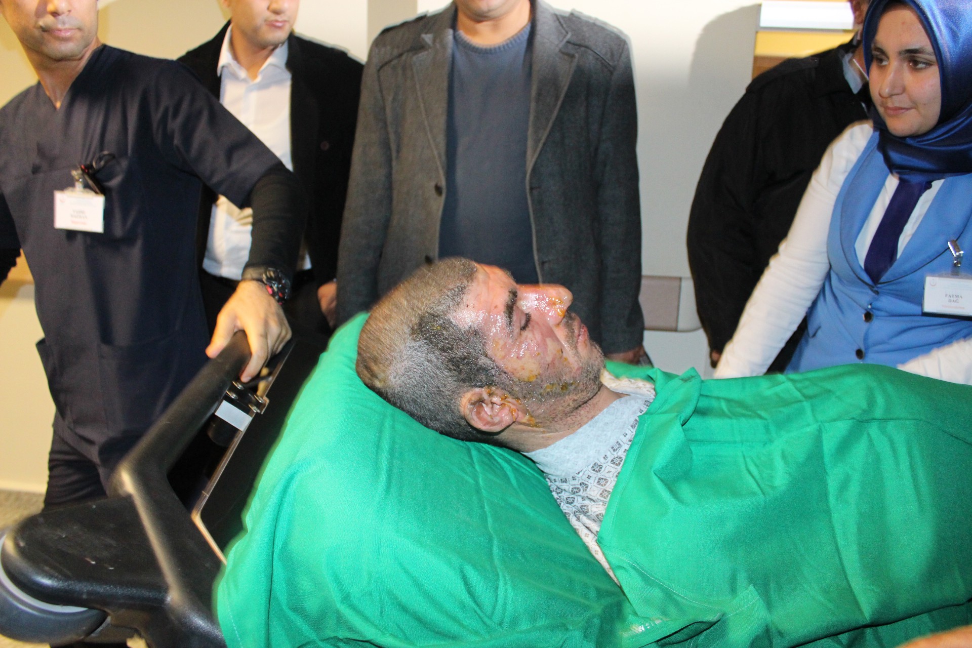Daha sonra konuşan Mustafa Özen’in akrabası Sefer Fidan ise “Ben dün akşam haber aldım Antep’e gittik. Orada araştırmada yatıyordu. Bugün de aldık buraya getirdik. Durumu, her tarafı yanık, yüzü, elleri, bacağında parça var, roket parçası çıktı. Biz karşıyız teröre. Yani gerekirse biz de gideriz savaşa” ifadelerini kullandı.