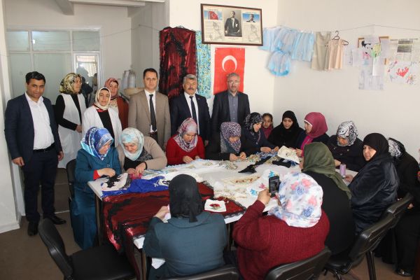 Halk Eğitim Merkezi Müdürü Aziz Özbilgiç, “Tüm kamu kurum ve kuruluşlar, sivil toplum kuruluş paydaşları ile faaliyetlerimizi yürütüyoruz. Burada halıcılık, giyim ve el sanatları adı altında kursumuz var. Yaklaşık 45 Suriyeli sığınmacı kardeşimiz bu kursa katılıyor. Bunlar Adıyaman merkezde ikamet eden mültecilerimizdir. Bizim amacımız onlara hem meslek öğretmek hem sosyal entegrasyonu sağlamaktır. Bu insanlara boş vakitlerini değerli bir şekilde geçirmelerine imkan sunuyoruz. Üretmiş oldukları Suriyeli sığınmacı kardeşlerimizin üretmiş oldukları malzemeleri bir kermes yapacağız” dedi.