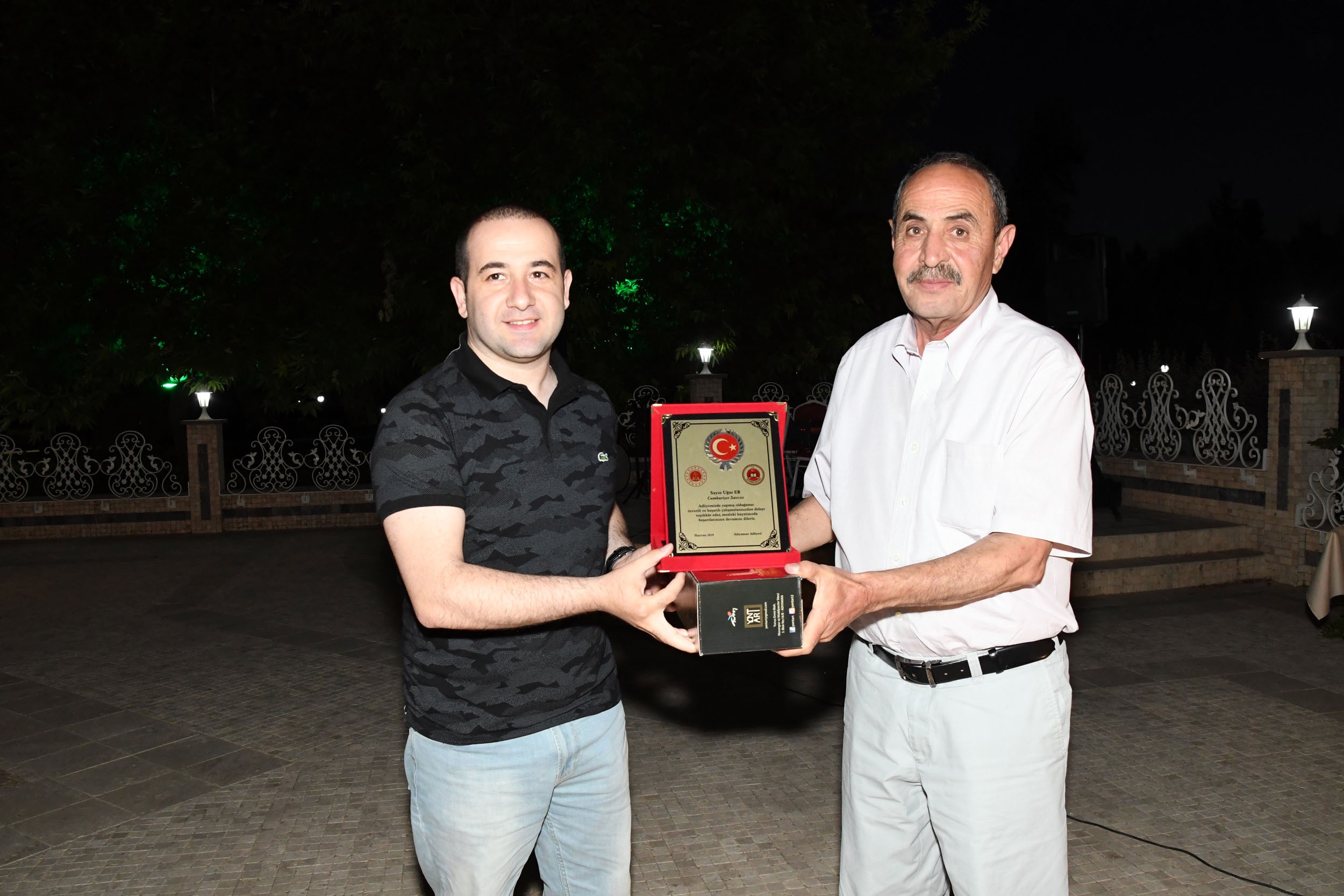 Cumhuriyet Başsavcılığının ev sahipliğinde Türkiye Petrolleri Sosyal tesislerinde düzenlenen veda yemeğine Adıyaman Valisi Aykut Pekmez ve eşi Yeşim Pekmez, Cumhuriyet Başsavcısı Bozan Çevik ve eşi, Garnizon Komutanı Albay Hüseyin Gürfidan, Belediye Başkan Vekili Şerif Ayaz, Adalet Komisyonu Başkanı Mehmet Yener, Adıyaman Üniversitesi Rektörü Prof. Dr. Mehmet Turgut, İl Jandarma Komutanı Albay Ercan Atasoy, İl Emniyet Müdürü Metin Alper, Baro Başkanı Mustafa Köroğlu, tayini çıkan hakimler, savcılar ve eşleri katıldı.