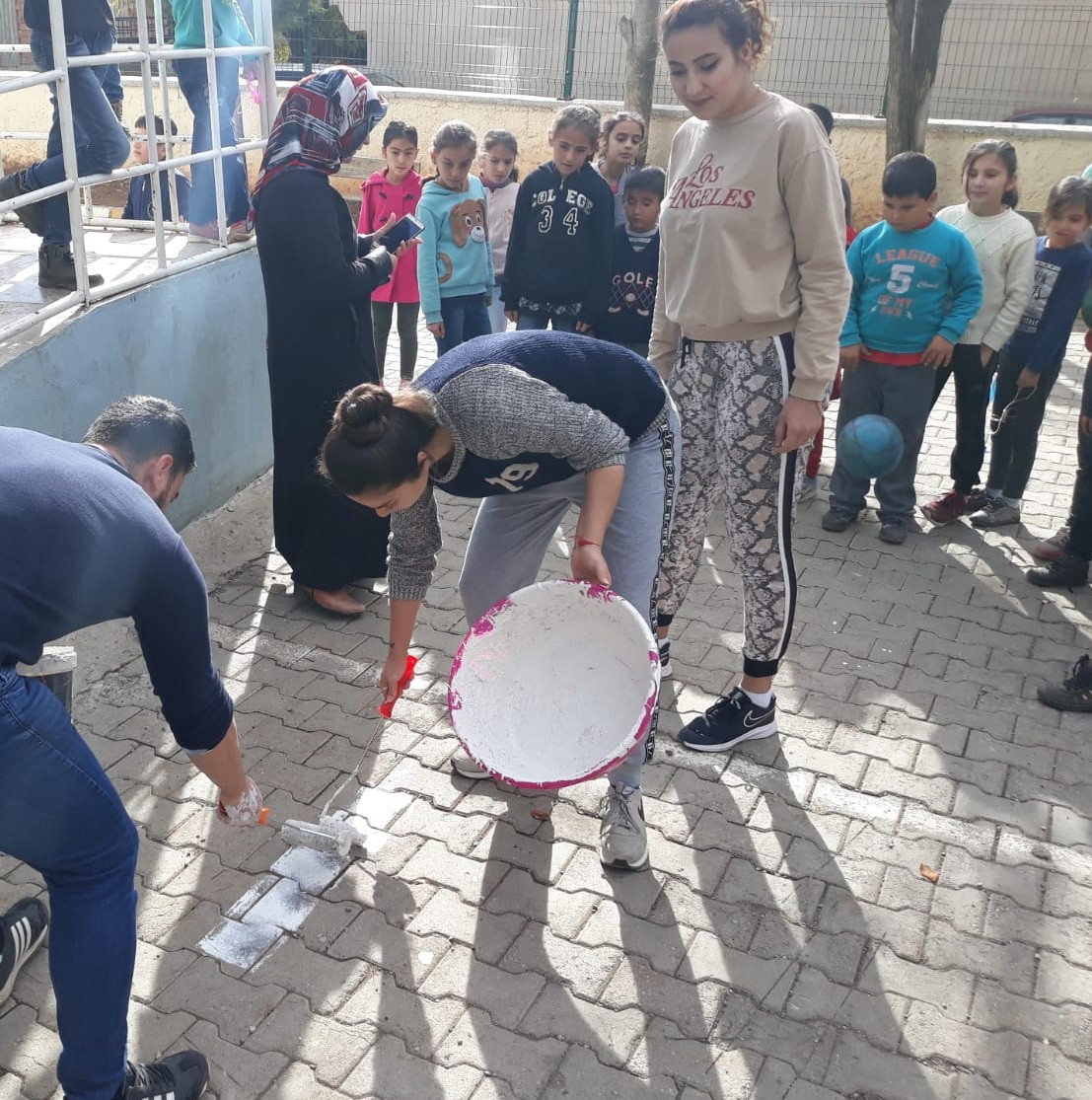 Yapılan çizgiler sonrasında üniversite öğrencileri ile ilkokulu öğrencileri basketbol oynayarak oldukça güzel vakit geçirdiler. Kaynak: İHA