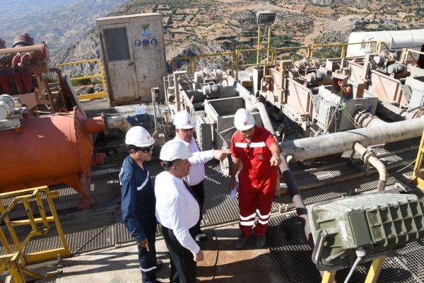 Adıyaman Valisi Aykut Pekmez, İl Jandarma Komutanı Albay Ercan Atasoy, İl Emniyet Müdürü Metin Alper ve TPAO Bölge Müdürü Hikmet Aslandere ile birlikte Kahta bölgesi Nemrut Dağı eteğinde sondaj çalışmaları devam eden Hizitepe-2 Sondaj Kuyusunda incelemelerde bulundu.