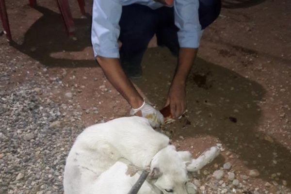 Adıyaman’ın Kahta İlçesinde yaralı olarak bulunan köpek tedavi altına alındı.