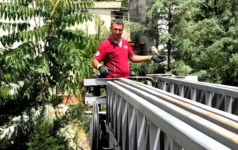 Adıyaman’da bir okulun çatısında bulunan yuvadan aşağı düşen yavru puhu kuşu itfaiye ekipleri tarafından yuvasına bırakıldı.