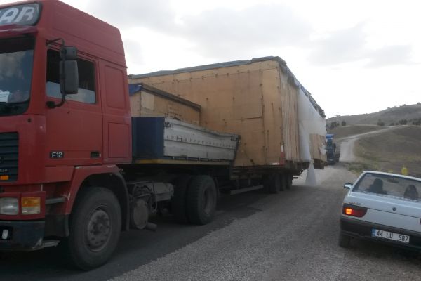 Sincik ilçesine bağlı Dilektepe köyünde yapımı devam eden HES şantiyesine malzeme taşıyan TIR, sabah saatlerinde Kahta-Sincik karayolunda adeta yolu kısmen kapatarak tehlikeli bir şekilde yoluna devam etti. Herhangi bir uyarıcı işaretin kullanılmadığı bir sivil aracın eskortluk yaptığı TIR, yolda seyir halindeki araçlara aldırış etmeden yoluna devam etti. TIR’a eskortluk eden sivil araçtaki bir şahıs karşıda gelen araçlara el kol işareti ile uyarmaya çalışması yolu kullanan sürücülerin tepkisine neden oldu. Sürücüler tehlikeli bir şekilde yolda ilerleyen aracın önüne herhangi bir uyarıcı levha konulmamasına tepki göstererek, trafik ekiplerinin kendilerini sürekli sıkı bir şekilde denetlediklerini kaydederek bu şantiyelere giden ağır tonajlı araçların sürekli tehlike saçtıklarını, ancak gerekli denetimlere tabi tutulmadıklarını ileri sürerek durama tepki gösterdiler.