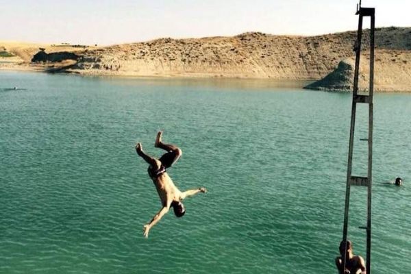 Samsat'ta Vatandaşlar Serinlemek İçin Baraja Giriyor
