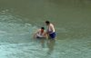 Irmağa uçan otomobilden kendi imkanlarıyla kurtuldular